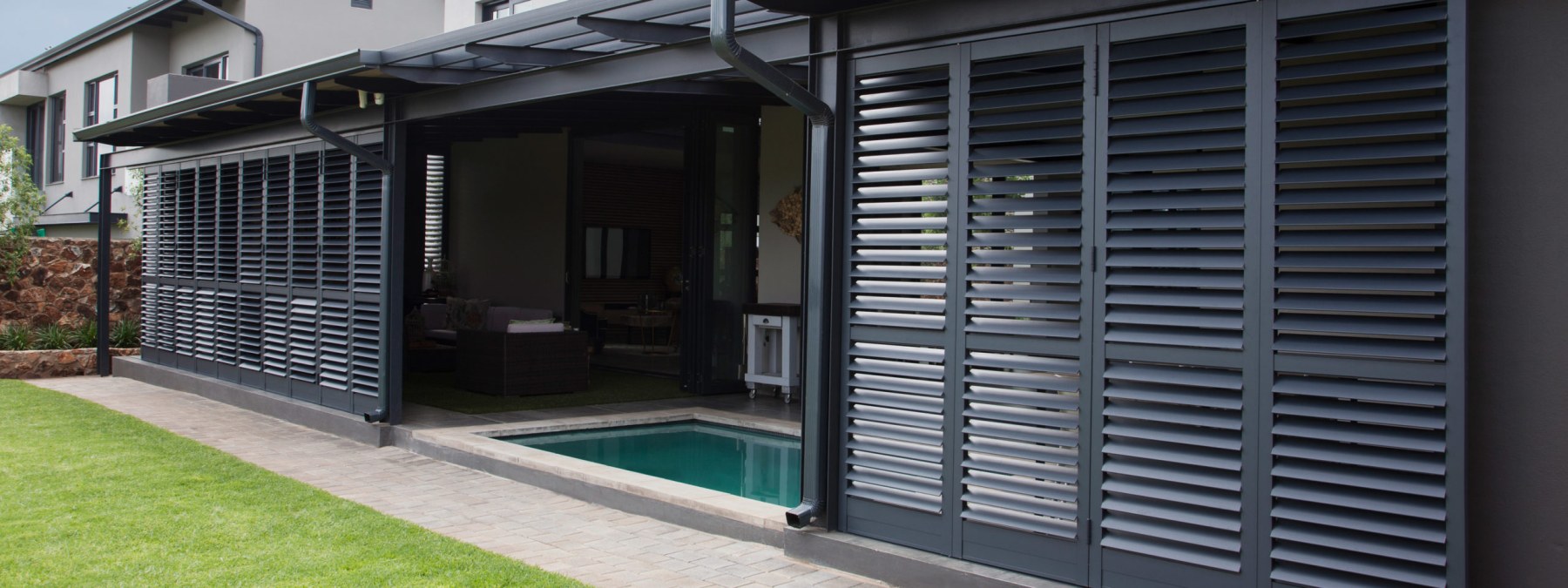 Our ENCORE External Shutter is made from a high strength aluminium extrusion that withstands high temperatures and Australia’s harsh environment. Panels are constructed with stainless steel hardware as standard for ultimate durability, a claim we stand by with our comprehensive 10 year warranty.