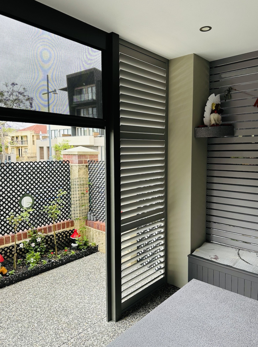 Our ENCORE External Shutter is made from a high strength aluminium extrusion that withstands high temperatures and Australia’s harsh environment. Panels are constructed with stainless steel hardware as standard for ultimate durability, a claim we stand by with our comprehensive 10 year warranty.